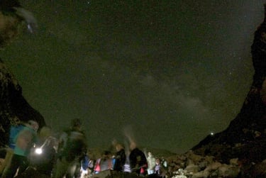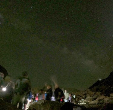 The path begins very wide, and there were a lot of people. The atmosphere was upbeat considering the time. We were offered a coffee stop only 1km into the hike. We stopped with the group as we were instructed but didn’t really require anything. I was distracted on the hike by noises coming from close to but just away from the path. We continued on and the stars became more visible. I love the night sky so this was a treat for me. Another kilometre in we stopped again, was concerned about time and missing the sunrise but I used the time to take a few shots of the sky.